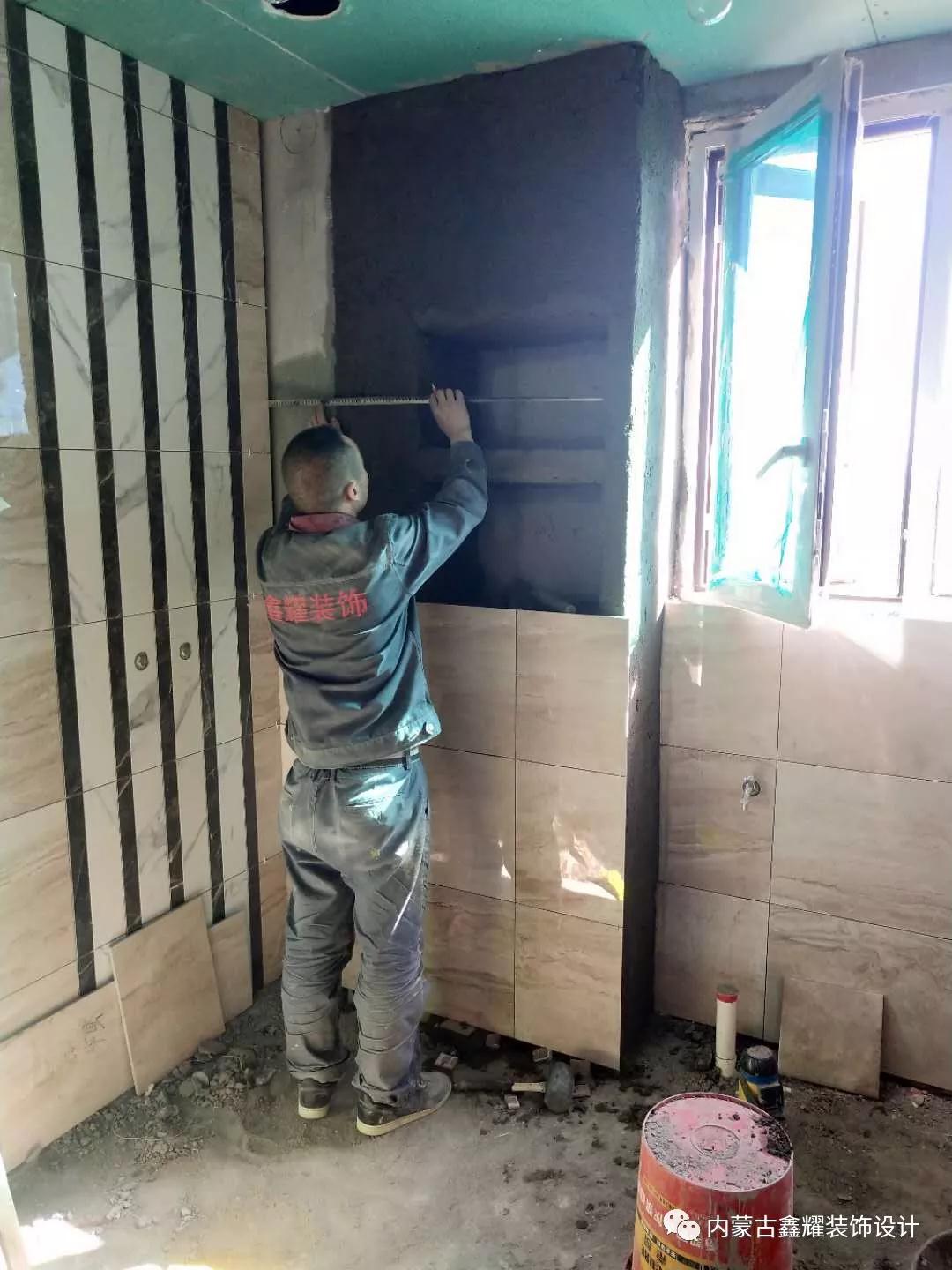 咱們的地磚采用的是干貼法, 墻磚采用的是濕貼法